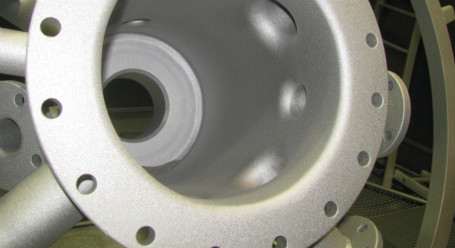 We can sandblast components up to a maximum dimension of 6,000 x 6,000 x 12,000 mm in our blast room. A hopper is employed to hold the varying abrasive media types suitable for aluminium, stainless steel etc.
